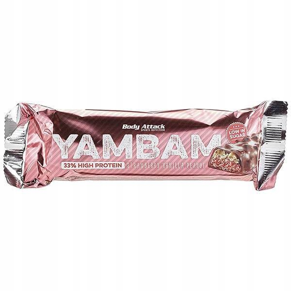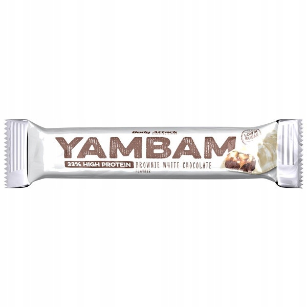 Body attack yambam to wysokobiałkowy (26 g) baton o obniżonej zawartości cukru (3,5g), charakteryzujący się niezwykle dobrym smakiem.